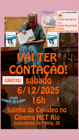E nossos livros infanto juvenis seguem ganhando asas! Um foi parar nos camarins da TV. Outros, em destaque na lojinha cult da Cavídeo, no cinema Estação Net Rio. E todos atravessaram o oceano, na mala da exposição “Brasil por meio dos livros para as infâncias.” criada pelo projeto “Conversa com o Leitor” e estão em Portugal, integrando esta linda iniciativa!