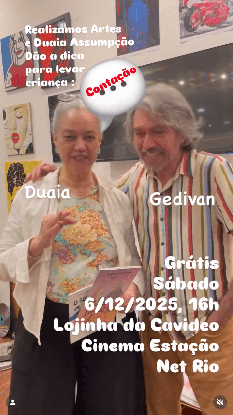 Em 13 de setembro de 2025, Duaia contou pela primeira vez as histórias dos livros “A Avó sem netos” e “O Sapo e a Poça” na lojinha da Cavideo que fica no Cinema Estação NET Rio, em Botafogo, no primeiro evento de contação lá.