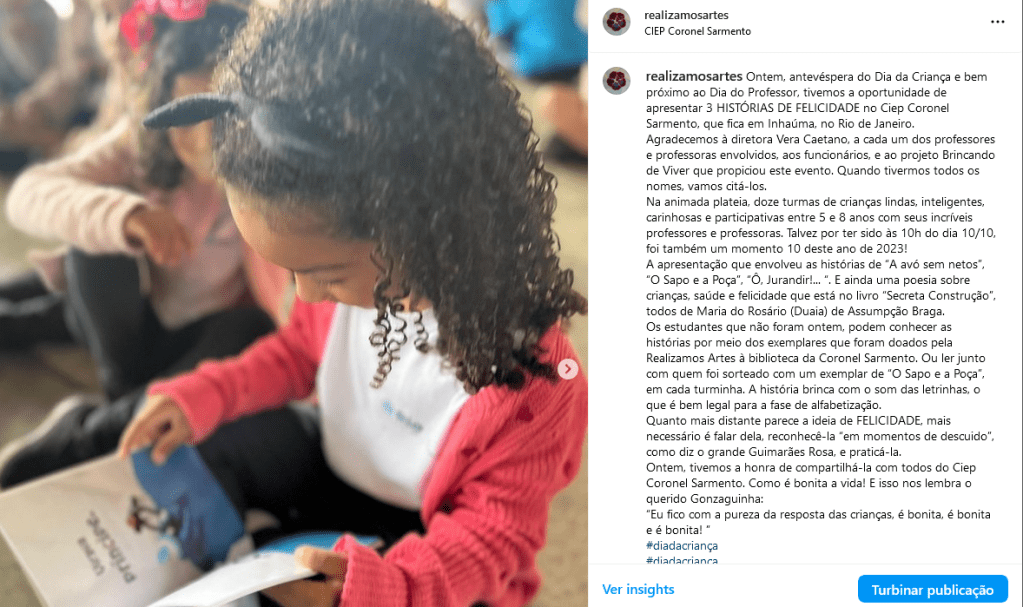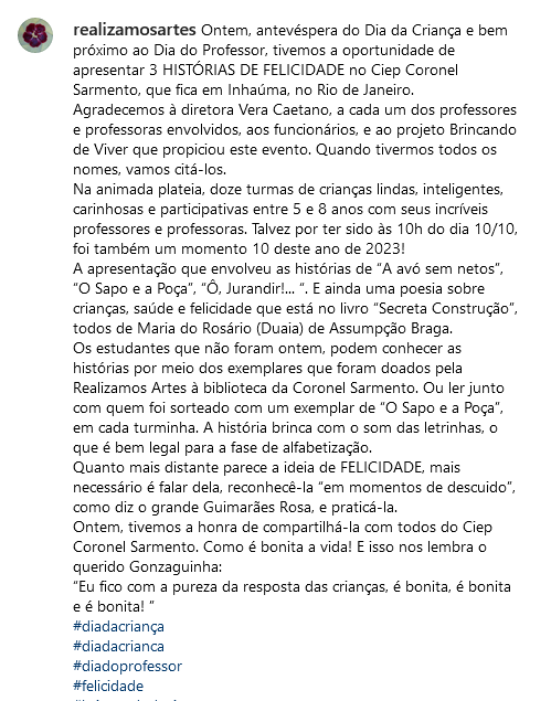 Evento: 3 Histórias de Felicidade Apresentação Cênico Literária no Ciep Cel. Sarmento, Inhaúma, Rio de Janeiro, 10.10.2023
