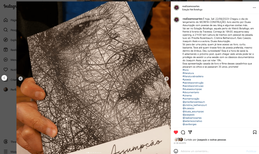 Evento: Joaquim e Duaia 35 anos de Amor e Arte, Estação Net Botafogo, Rio de Janeiro, 22.08.2023