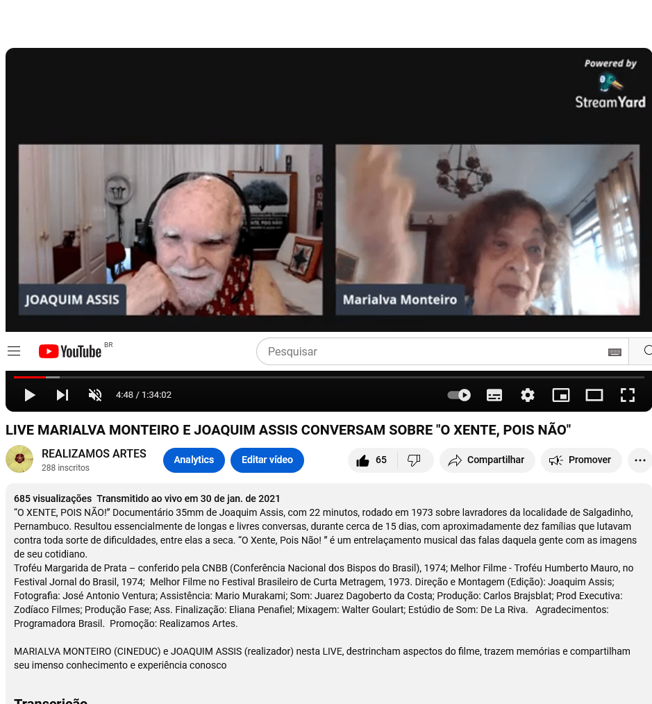 Em 2021, uma das Lives com o mote “Solidariedade Transforma” foi dedicada a O XENTE, POIS NÃO! e contou com a presença de Marialva Monteiro (CINEDUC) que o exibiu em centenas de lugares de todo o Brasil.