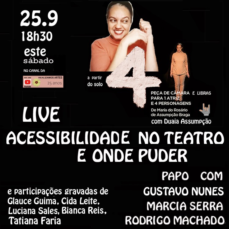 Em 2021, ainda durante o isolamento social, a Realizamos Artes realizou a Live em torno de Acessibilidade no Teatro, a partir da experiência da pesquisa 4 e Libras: