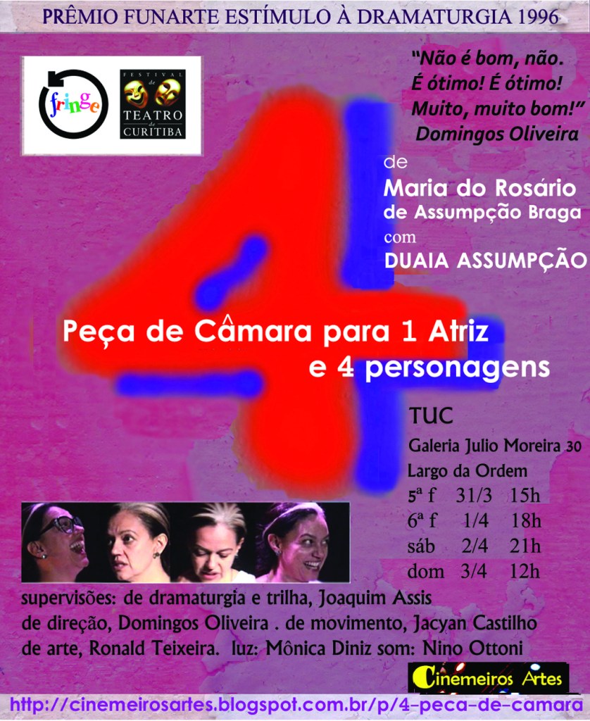 Março e abril, 2017, 4 selecionado para o Festival de Curitiba, Mostra FRINGE, Curitiba, PR