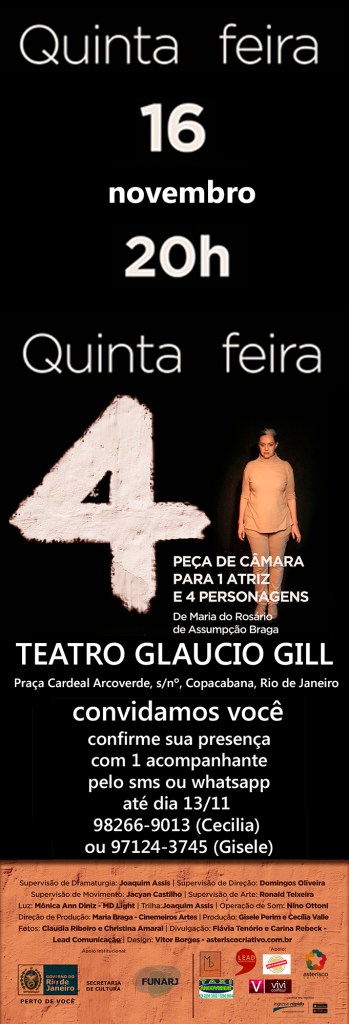 Nov 2017, 4 em curta temporada no Teatro Glaucio Gill, Copacabana, RJ