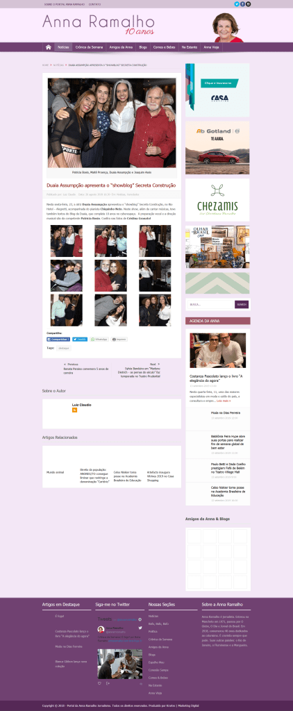 O showblog estreou no piano bar Alegretti, em Copacabana, foi apresentado no I Festival Midrash de Música e convidado a encerrar a 3a Mostra Mulheres em Cena, no Teatro do Planetário, hoje Teatro Municipal Domingos Oliveira.