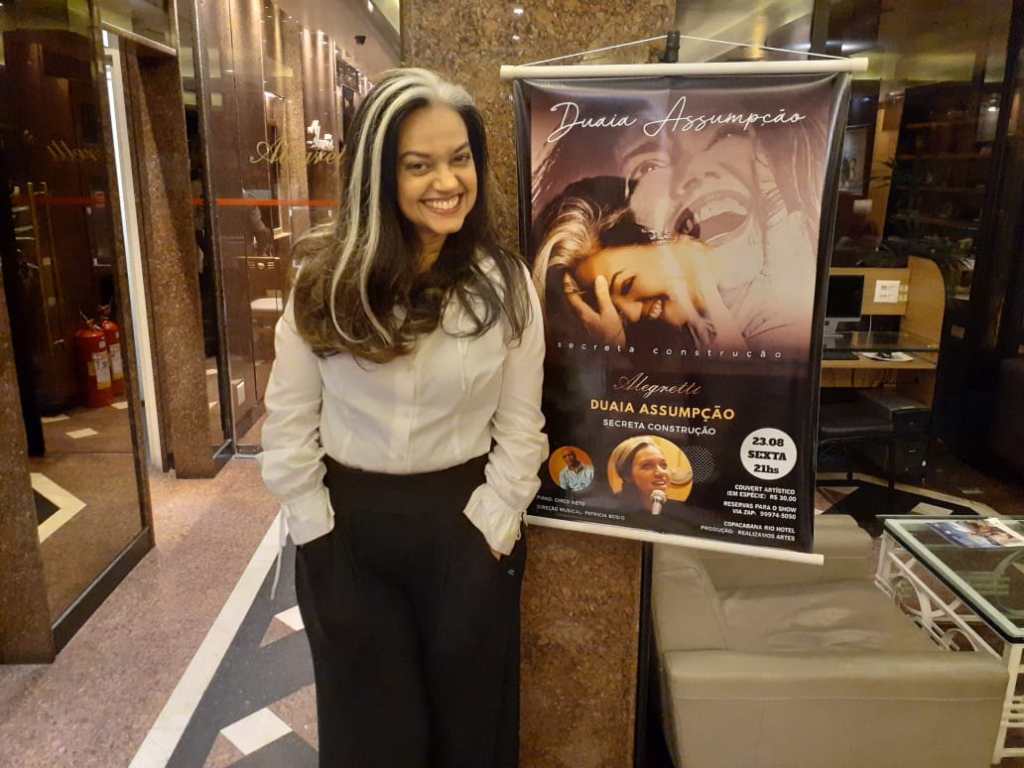 SECRETA CONSTRUÇÃO é o “showblog”. que a atriz Duaia Assumpção apresenta desde 2019, luxuosamente acompanhada ao piano.