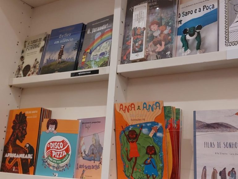 A atriz e preparadora Ana Cordeiro folheou O Sapo e a Poça em pé mesmo, na livraria.