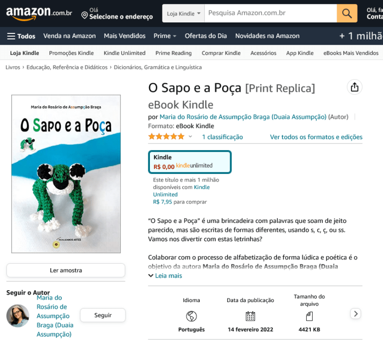 Se prefere conhecer no kindle antes de dar a uma criança, tem O SAPO E A POÇA na Amazon: