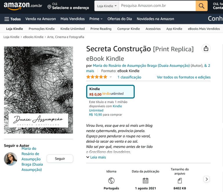 MAS SE O EBOOK É MAIS PRÁTICO, TEM SECRETA CONSTRUÇÃO NO FORMATO KINDLE.