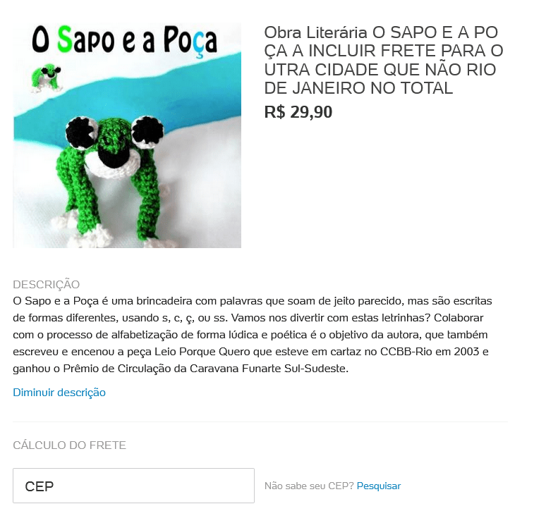ATÉ 3 EXEMPLARES DE “O SAPO E A POÇA”, CADA EXEMPLAR SAI POR R$ 25,00 (FORA O FRETE)
